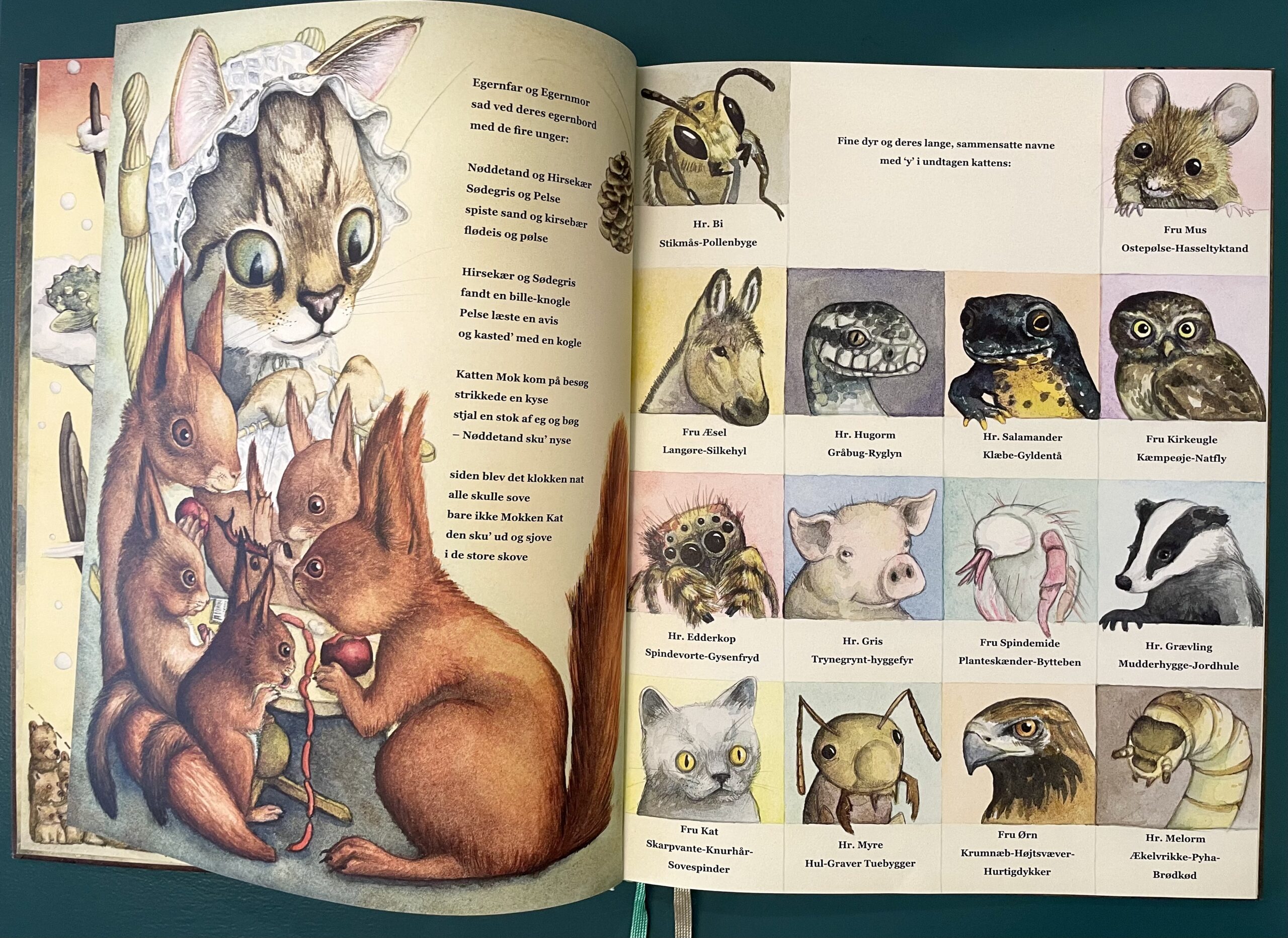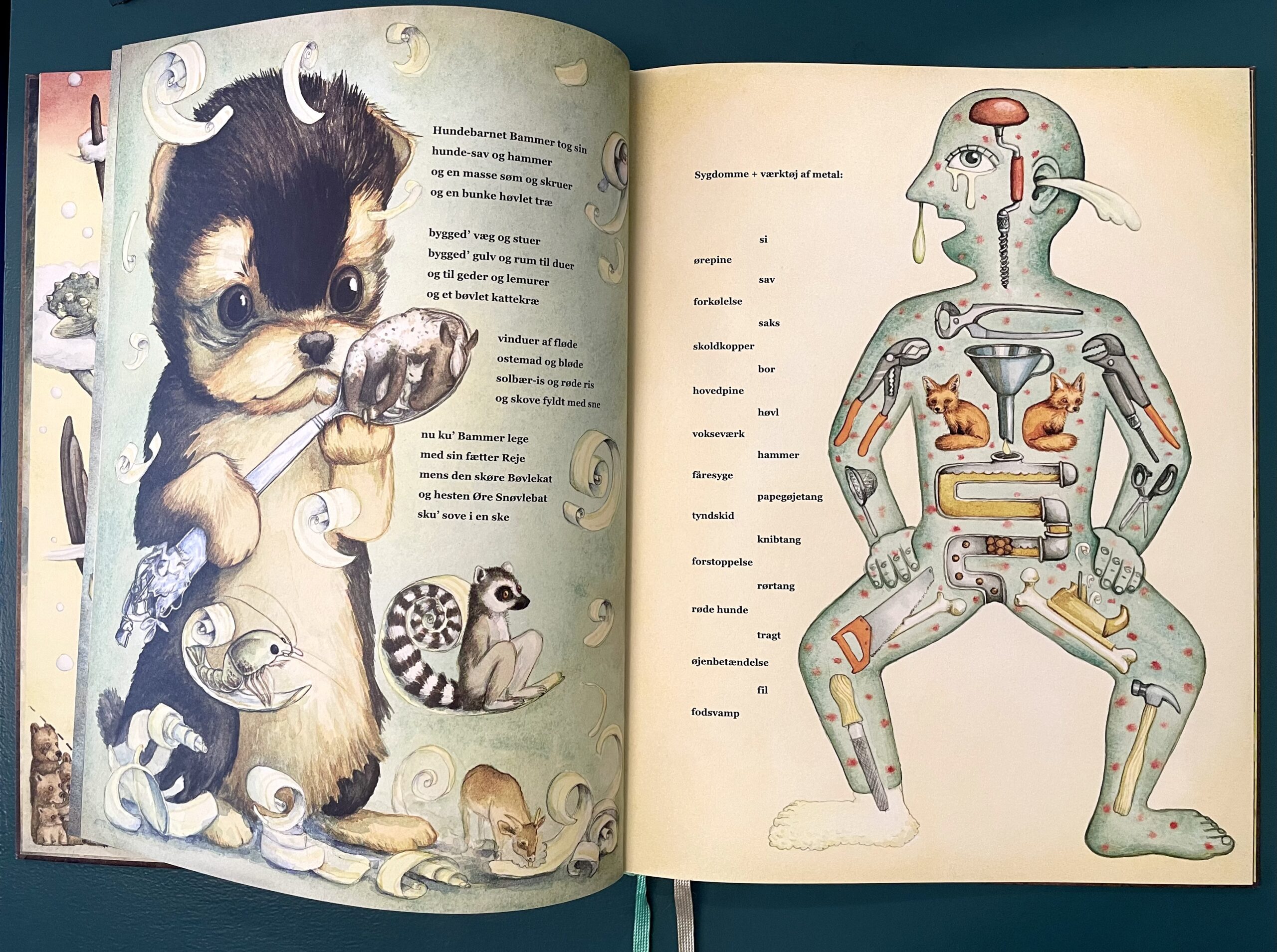 Lyrisk sprudlende billedbog, der består af samling af legende, rytmiske, sjove og nysgerrige rim, remser og ordlister ledsaget af fantastiske, underfundige billeder. Samspillet mellem tekst og billeder giver en helt unik læse/kiggeoplevelse. Bogen kan være med til at udvikle børns ordforråd og begrebsforståelse, da de med næsten sikkerhed bliver præsenteret for ord, som de ikke kender. Der leges med det danske sprog, og de sjove rim giver anledning til samtaler og grin og refleksioner. En kunstnerisk og anderledes læse- og kiggeoplevelse for både børn og voksne.